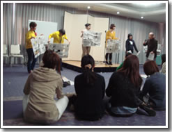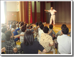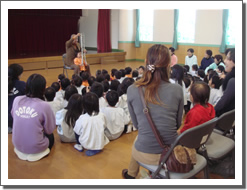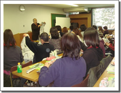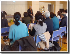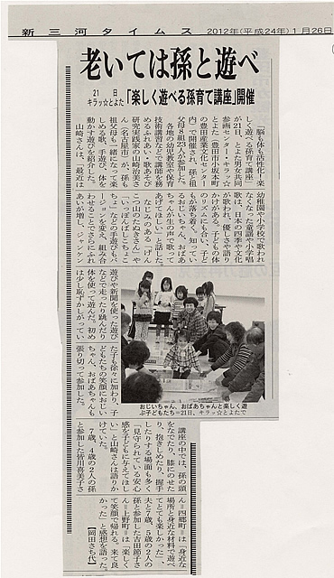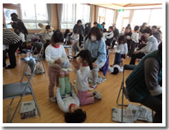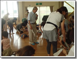 子育て支援事業の一環として“父親支援講座”が同市健康ドームで開催されました。パパとママそして子ども(幼児)という家族全員での参加で、とてもほほえましく和やかでした。 第1部の「パパならではの親子遊びを楽しもう」では、親子でスキンシップをとりながらの遊びに、パパとママが一緒で、子どもたちはとっても幸せそうで、 特にパパが嬉しそうに大ハッスルしていました。第2部はママと子どもだけで「わらべうた遊びを楽しもう」 のひとときで、わらべうたを歌ってのスキンシップ遊びをゆったりと楽しんでいました。 参加者の声:「今まで、家族揃って公園に出掛けることはあるが、父子の組み合わせで遊んで、母親はベンチに座って遊ぶ様子を見ているという過ごし方が多いが、家族全員で関わり、共感し合って一緒に遊ぶということがなかったので、とても新鮮でした。」
